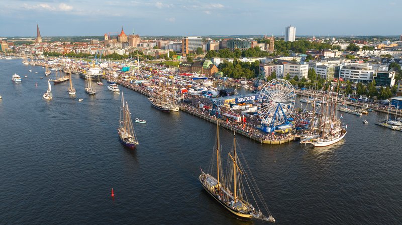 Während der Hanse Sail 2025 sind Drohnenflüge über und in einem Mindestabstand von 100 m zu allen Veranstaltungsgebieten aus Sicherheitsgründen nicht gestattet.