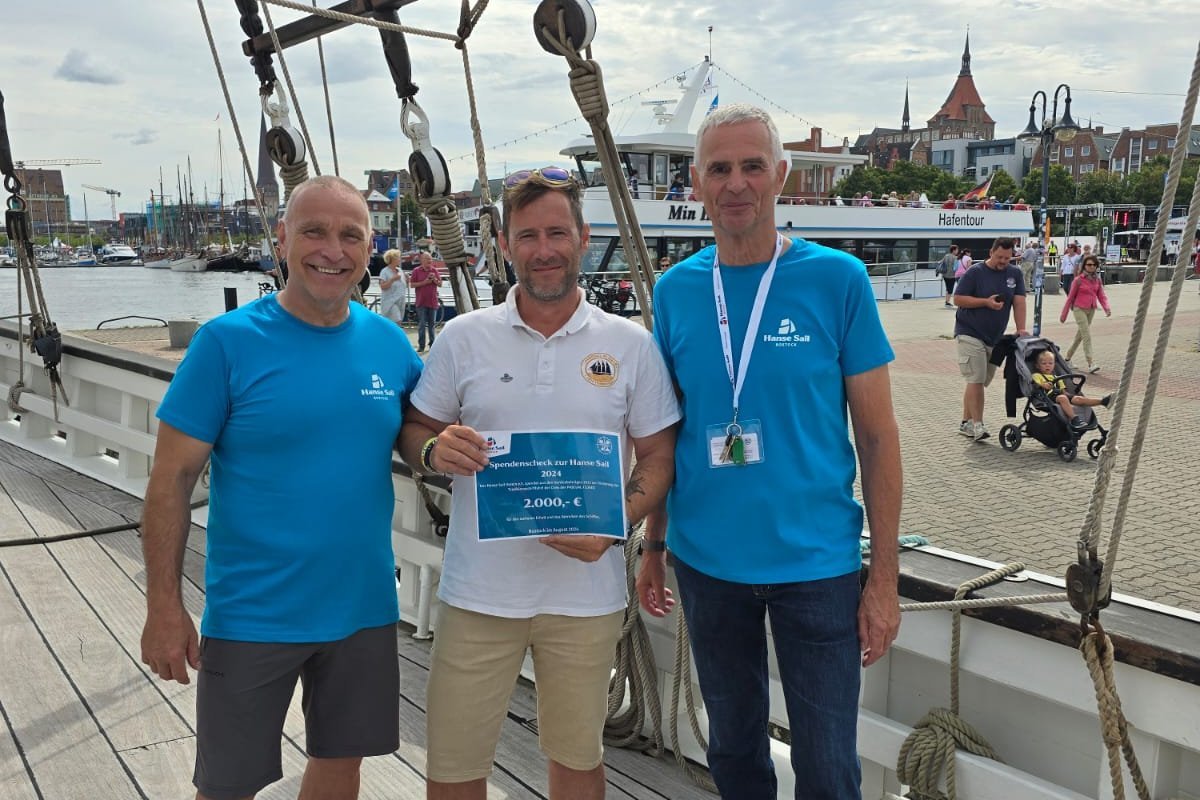 Einen Scheck über 2.000 Euro übergab Horst Greinert, Schatzmeister des Vereins, an die Crew der PASCUAL FLORES.