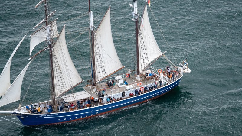 Der heutige 3-Mast-Topsegelschoner wurde 1951 in Lowestoft als Traw für die Arktis gebaut. Er gehörte der Dalby Steam Fishing Company und fuhr unter dem Namen “Vanessa Ann“ von Fleetwood als typischer 1 mit hoher Back und erhöhtem Ruderhaus. Da er in isländischen Gewässern fischte, spielte er auch eine Rolle im damaligen “Kabeljaukrieg“. Später diente die Vanessa Ann unter neuen Eignern als Überwachungsschiff für Ölplattformen in der Nordsee. Als die Kurbelwelle ihrer Maschine brach, wurde sie aufgelegt und schließlich an einen Briten verkauft. Dieser haue nach einem Rumpf Ausschau gehalten, den er als Frachtsegler ausbauen wollte, um im Südpazifik Handel zu treiben. Aufgrund der guten Segeleigenschaften suchte der Brite zielgerichtet einen Trawler der 50-er Jahre und fand ihn in der Vanessa Amt Er schleppte den Rumpf nach Dänemark, wo er einen neuen Motor und einen Verstellpropeller einbauen ließ. Dann motorte er nach London, wo die Umbauarbeiter beginnen sollten. Bedauerlicher Weise erkrankte er schwer und musste das Schiff 1984 an Reg March und Jack Scott verkaufen. Reg March hatte sich bereits als Takler und Marineingenieur einen Namen gemacht und suchte nach einem eigenen Schiff Die hohe Back und der Brückenaufbau wurden entfernt. Das Deckshaus darunter beließ man als Deckssalon und Kartenraum und überbaute es mit einem Sonnendeck, das bis zu den Bordwänden gezogen wurde. Unter Ausnutzung der Fundamente des alten Fischereigeschirrs wurde das heutige Schonerrigg erstellt. Der hintere Teil wurde zum „Hotel zur Schraube“ ausgebaut. Der ehemalige Fischraum wurde zu einer voll klimatisierten Disco mit Bar umgebaut. Ab sofort sollte sie Tagesausflügler transportieren. Wo sie nach 1986 auch stationiert wurde, stieß sie bei bereits ansässigen Schiffsbetreibern auf Widerstand. 1988 wurde sie schließlich in den Konkurs gezwungen. Schließlich wurde sie von Barbados nach Plymouth beordert und dazu aus den US Virgin Islands noch einmal instandgesetzt. Nach einer äußerst langen Reise erreichte die Vanessa Arm ihr Ziel. Allerdings waren die Segel hinüber, die fast neue Maschine defekt und Einrichtung verwohrit. In diesem Zustand wurde sie abermals zum Verkauf aufgelegt. 1993 erwarb die Kelly Family die Vanessa Ann und rekonstruierte sie mit einem erheblichen Aufwand. Die Unterkünfte wurden mit Teakholz ausgebaut und sie erhielt ein neues Holzdeck. Die Nutzung in den Folgejahren war rein privater Natur. Mit dem Tod der Mutter der Kellys wurde das Schiff zum Andenken in “Santa Barbara Anna“ umbenannt. Seit dem 1. Januar 2014 betreibt der gemeinnützige Verein »Bramschot e.V.« in Rostock die SANTA BARBARA ANNA. Ziel und Zweck dieses aus Kreisen der Crew gegründeten Vereins ist es, die traditionelle Seemannschaft auf Großseglern als Brauchtum zu erhalten und zu pflegen und durch Einbeziehung Jugendlicher an die nächste Generation weiterzugeben.